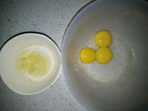 把所有材料准备齐全了,先将蛋黄分离出来,隔水加热,把混合夜打发只浅黄色,注意不要起颗粒,不然后面提拉米苏浆里面会出现很明显的蛋黄颗粒。