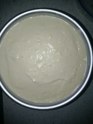 搅拌好的蛋糕液会有不少气泡,轻轻震动搅拌盆,震出气泡