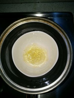 牛奶中加入白砂糖和吉利丁片隔水加热