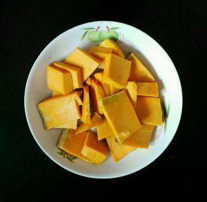 南瓜削皮切片,水开后上锅蒸,南瓜片可以切薄一点,这样熟的快点。
