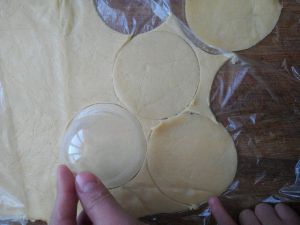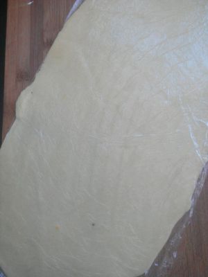 取一个小剂子擀开,大约0.3cm薄厚就可以了