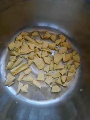蒸南瓜的功夫来处理黄油吧,切小块,隔水融化