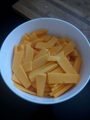 南瓜切薄片,盖保膜上锅蒸熟。二十分钟左右。也可以微波炉高火10分钟左右。都可以啦。。