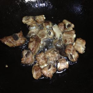 少油烧热放姜炝锅,放排骨,调料汁,和水,水莫过排骨