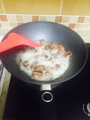 依旧小火倒入排骨翻炒均匀。