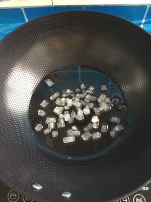 锅内倒入少许开水,放冰糖,开大火并不断用铲子搅拌至冰糖完全融化