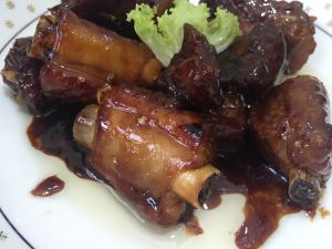 出锅装盘,酱汁包裹着排骨,味道赞啊,也有焦糖的感觉。