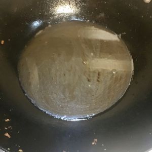 留余油小火加入白糖(冰糖更健康)慢慢融化。