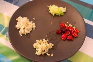 葱姜切沫,爆锅出香味了加入梅干菜进行煸抄