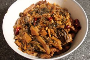 梅干菜多洗几遍,把里面夹杂的沙子洗干净,要不会影响口感