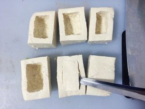 用小勺将豆腐中间挖空,但不要挖破挖穿。