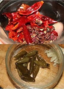 锅里下油,比较多的油。把干辣椒,花椒炒香