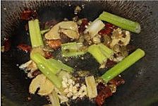 再把姜片,泡椒碎,大葱等放进去继续炒香
