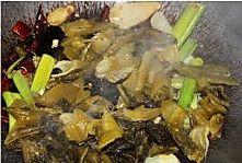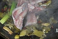 加进鱼头鱼骨,翻炒几下