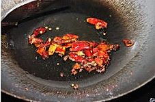 油锅里放葱姜蒜辣椒煸炒