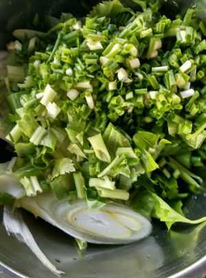 酸菜买回来揉洗干净,切成小片片,很多馆子的酸菜都只剩菜帮,但是我超喜欢叶子,所以我叶子也留着