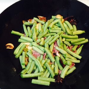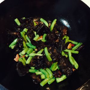 待四季豆变色,放入黑木耳继续大火翻炒;