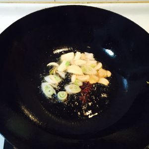 锅内放油加热,葱姜蒜、大料下锅煸至香味溢出;