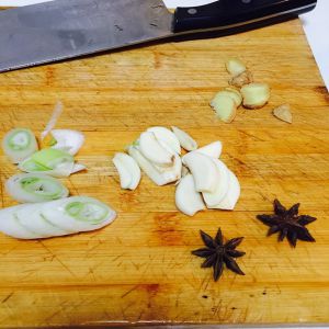 葱姜蒜切好备用,大料两颗备用;