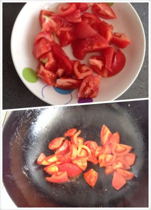 把西红柿切好放入锅中,待西红柿的汁榨的差不多放入鸡蛋