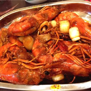 葱香浓郁,酱汁鲜美的油焖大虾就做好了!