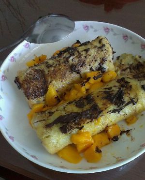 做法4:巧克力芒果鸡蛋吐司