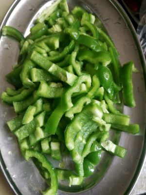 三根青椒洗干净,切成小段