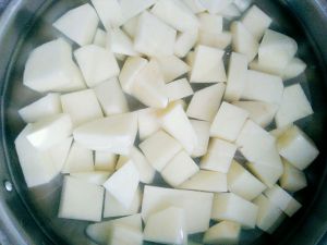 鸡腿斩块,土豆胡萝卜切滚刀块!备料
