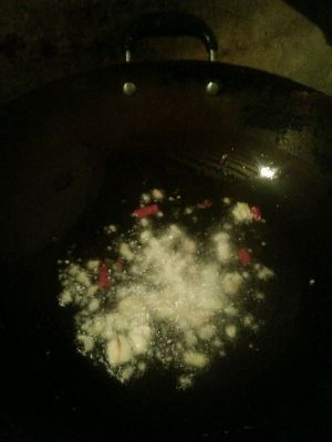 炒锅里放适量油 烧至八成熟 放入花椒粒炸出香味把花椒取出 然后放蒜片 干辣椒 泡椒 出香味之后放入腌好的瘦肉炒断生 在放适量酱油翻炒