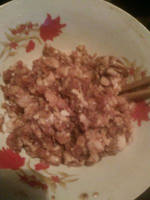 五花肉洗净剁成肉沫,用盐料酒酱油少许淀粉腌一会儿,也可以买绞好的肉沫,(不过我都是自己剁,干净)