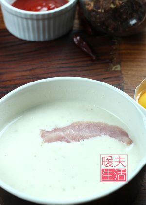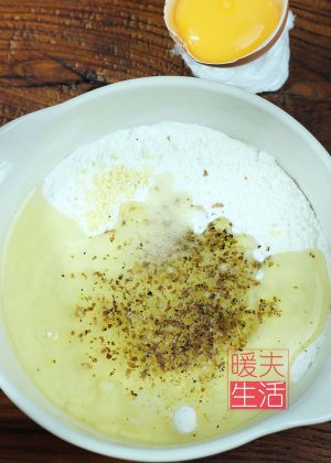 面粉加蛋清、黑胡椒、盐搅开,如果太干可以加一点水
