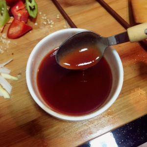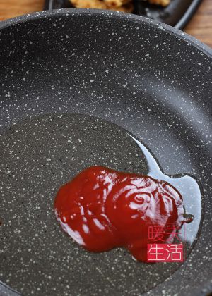 调酱汁:一勺白糖、一勺番茄汁、两勺甜辣酱