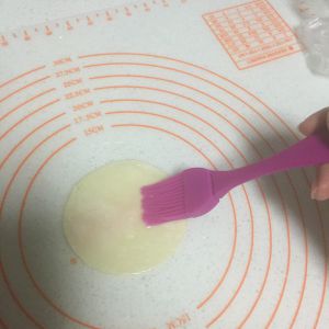 熟油加面粉搅拌,较稀为好,更容易摊开。