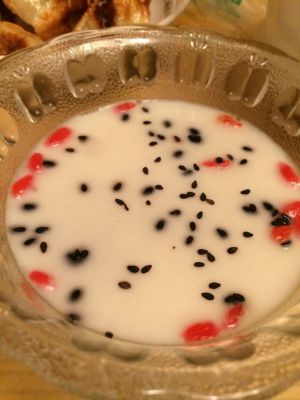 多了一碗,于是放了点枸杞和黑芝麻,哈哈,也不错。