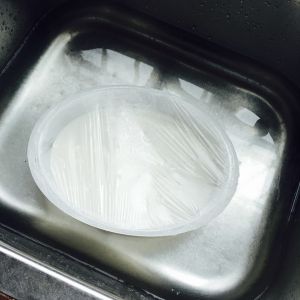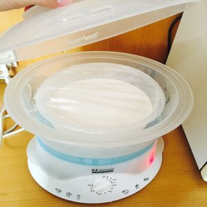 盖上保鲜膜,蒸10分钟,不要马上打开,放入冰箱或闷5到10分钟