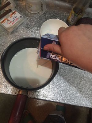 把牛奶和淡奶油倒入奶锅 煮开加入砂糖晾凉