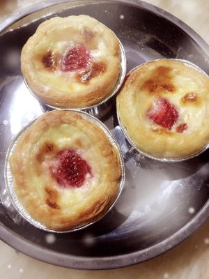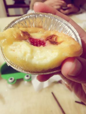把挞水及榴莲放在挞皮中,大概8成满。烤箱预热5、6分钟,200度烤20分钟左右,然后那个香啊……不说了,口水要流下来了!