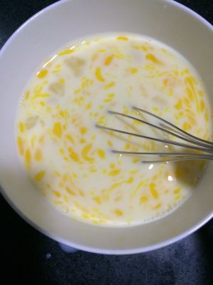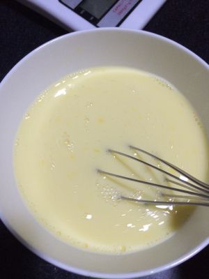 搅匀到白糖融化,鸡蛋和牛奶完全融合