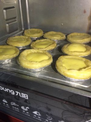 烤箱210度预热10分钟,中下层210度25分钟。美味的蛋挞就烤好了。放中层烤出颜色再换到中下也可以,简单又美味。初次做的时候要熟悉自家烤箱,避免烤糊。