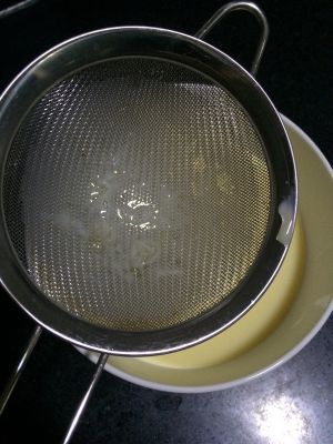 过筛一次,网里融不掉的蛋清可以倒掉了