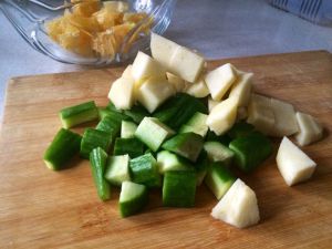准备材料,玉米,鸡蛋煮熟,黄瓜切片,秋葵焯水备用