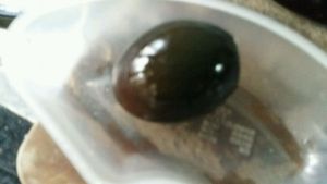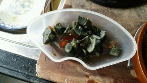 皮蛋去壳,切丁,葱,切成葱花,备用。