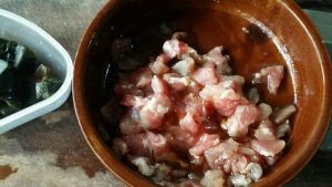 准备另一个锅,待水煮开,放入腌制好的瘦肉,煮开后就起锅,在用温水冲掉肉的浮末,沥干备用。记得肉不要煮太久,会太老哦。这一步忘记拍照啦,哈哈