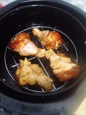 预热空气炸锅200度,5分钟。把腌好的鸡翅根放入炸锅,摆放好,200度10分钟,然后翻面继续10分钟出锅。出了好多油看来平时真的是多吃了好多的油,难怪这么胖