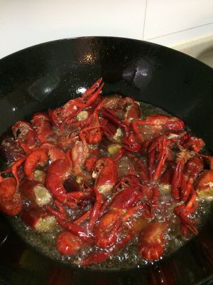 加入小龙虾翻炒。