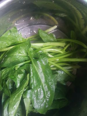 菠菜洗干净,备用,菠菜最好最后放,这样会更新鲜。保持蔬菜的水分和色泽。