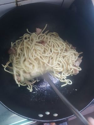 最后把面放进去炒炒干 就可以出锅了