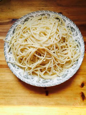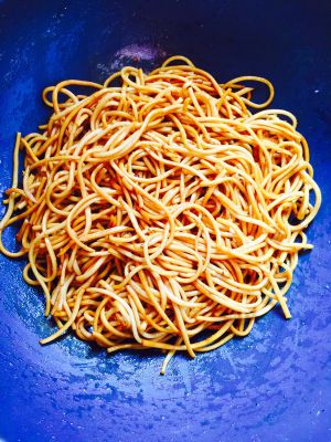 将广式炒面汆烫至熟后,捞起沥干水份,放凉备用。