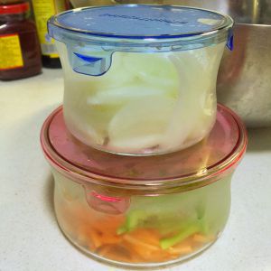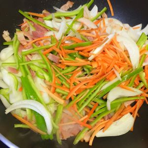 提前切好了蔬菜丝 胡萝卜丝 青椒丝 洋葱丝 根据自己喜好添加或减少。