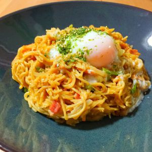 最后加入方便面,大火翻炒至均匀入味即可出锅,时间不可太长